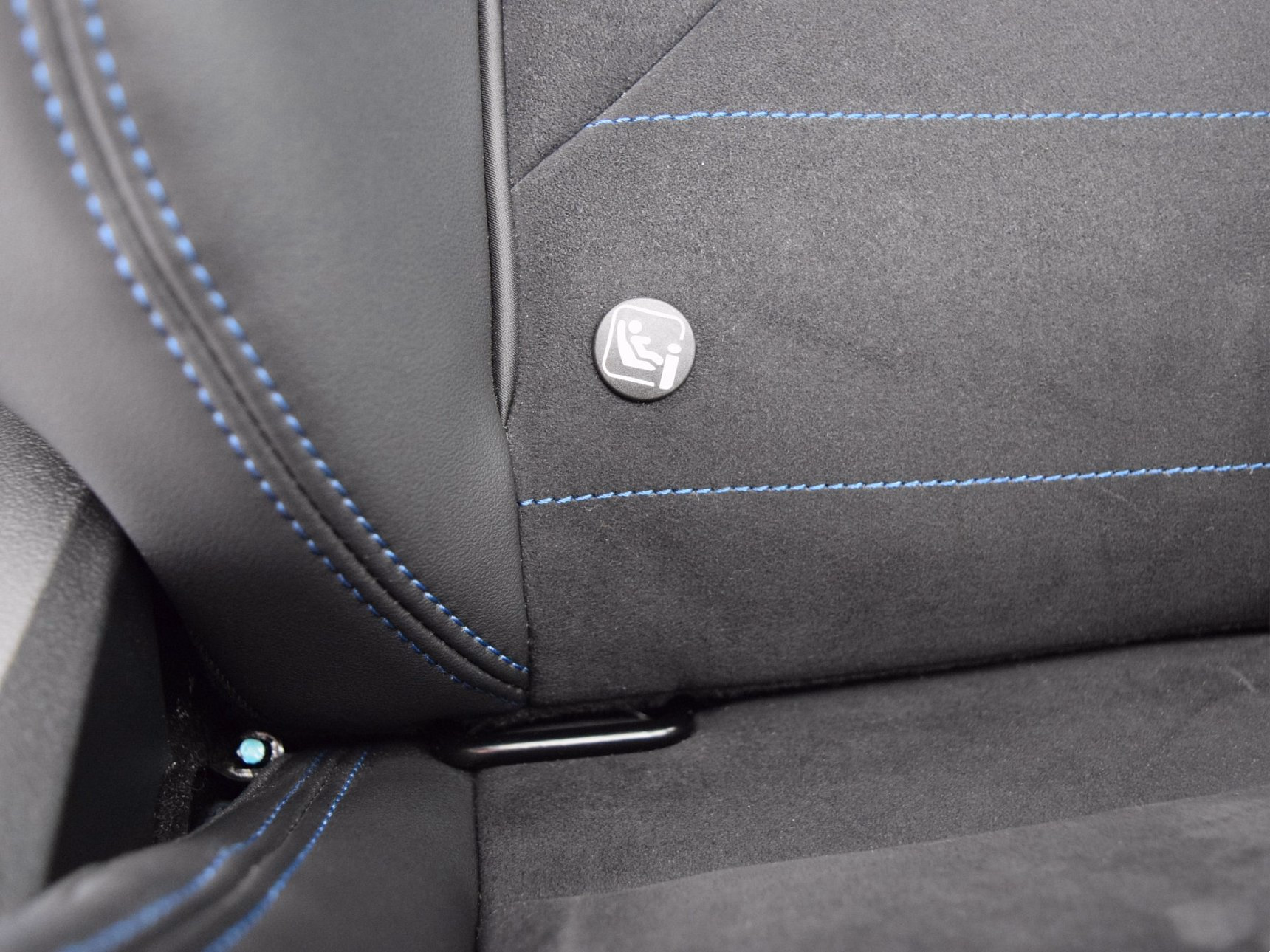 Kombinace M Alcantara / umělá kůže Veganza Black s modrým kontrastním prošíváním