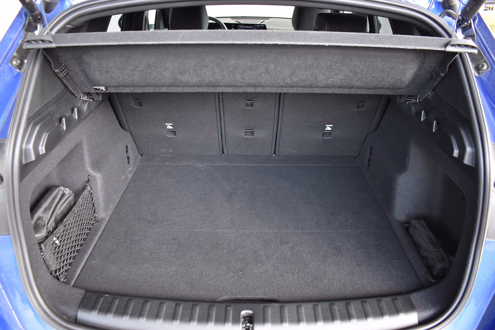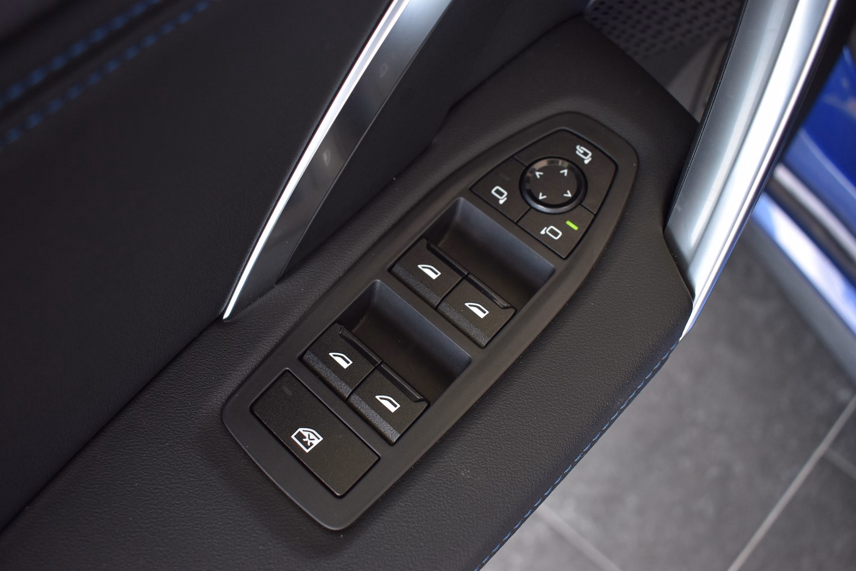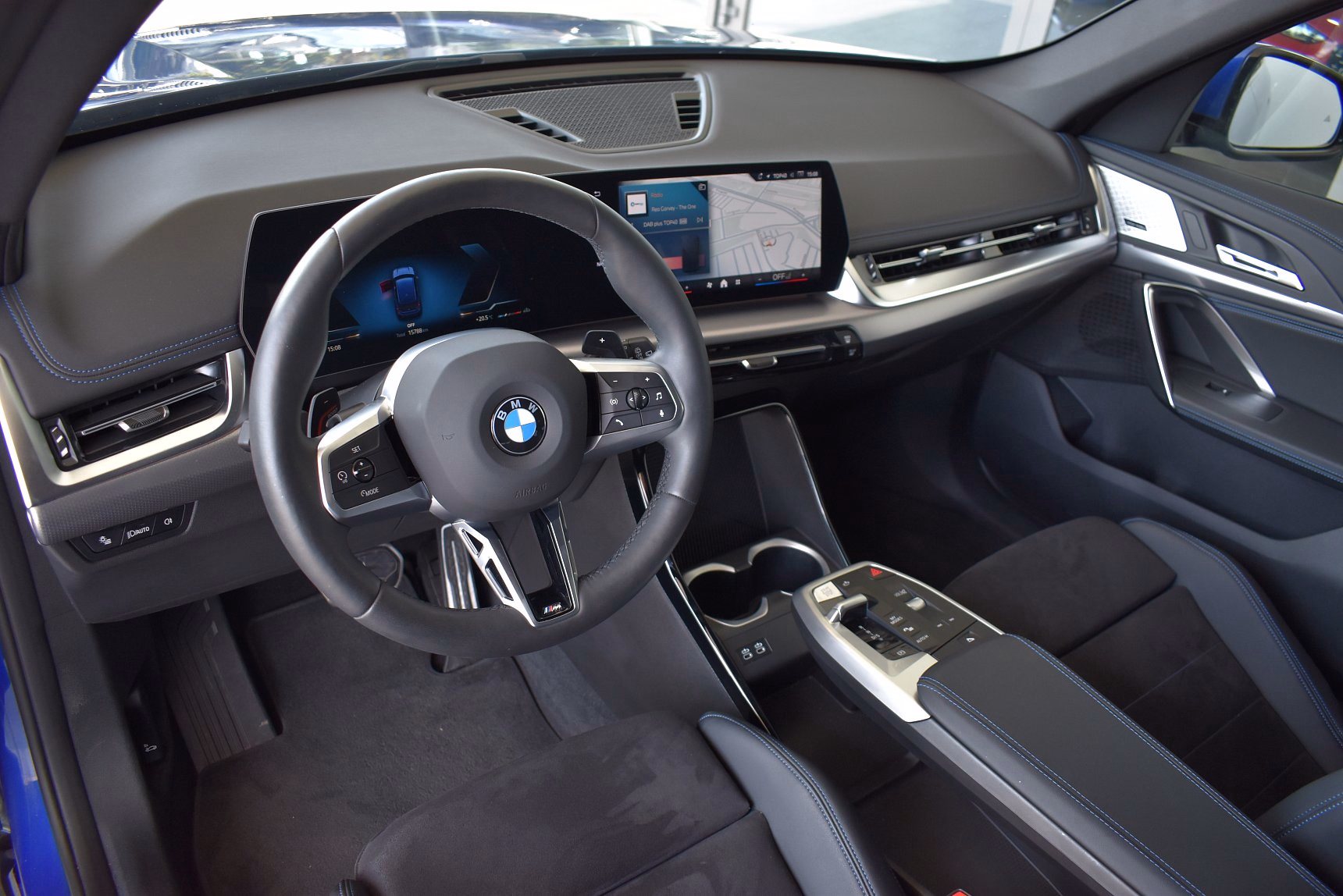 Kombinace M Alcantara / umělá kůže Veganza Black s modrým kontrastním prošíváním