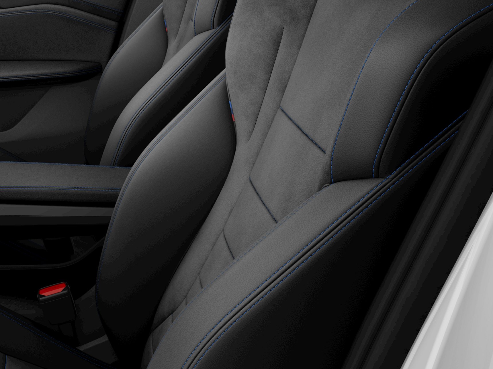 Kombinace M Alcantara / umělá kůže Veganza Black s modrým kontrastním prošíváním